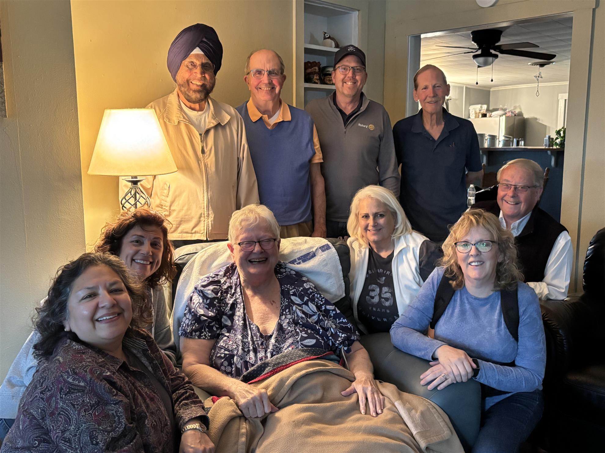A total Rotarians and 1 spouse paid a planned visit to our own Kathye Herrera last night and shared delicious pizza, drinks, dessert and stories! What a great time we had visiting Kathye and Doug in their new digs in Hudson. From L to R are - Back row: Mohinder Chadha, Gerry Burg, Bob Gardner, and Nelson Douglass. Front row: Carrie Dillon, Theresa Soto, Kathye, Patty Clark, Michele Gardner and Chuck Chase. His wife, Linda, took the photo! Wonderful seeing you, Kathye. Best wishes to you and Doug for the most positive of test results and upcoming medical procedures! We sure do miss you!
